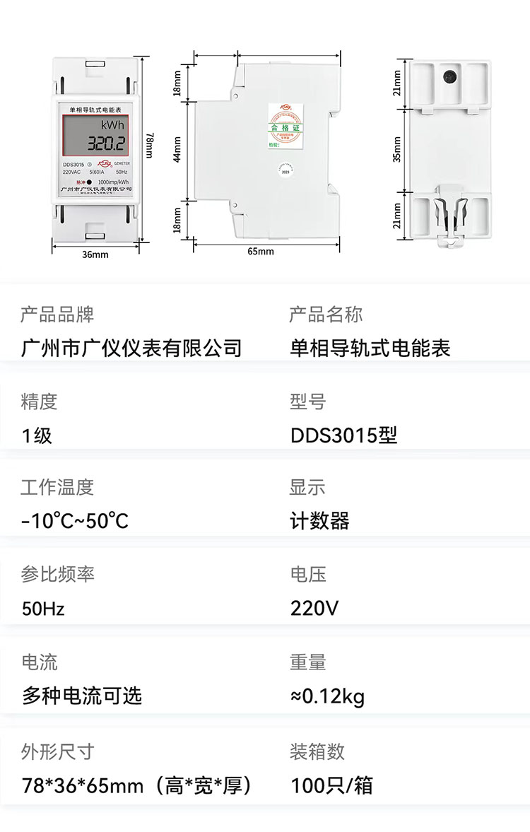 DDS3015单相导轨式电能表系我公司采用微电子技术与专用大规模集成电路,应用数字采样处理技术及SMT工艺等现金技术研制开发的三相四线有功电能表。该表技术性能完全符合GBT17215.321-2008和ICE62053-21国际标准中1级三相有功电能表的相关技术要求,能直接精确地测量额定频率为50HZ或60HZ三相四线交流电网中负荷的有功电能的消耗。该表油步进电机式脉冲计数器显示有功电量和液晶显示的有功用电量,具有可靠性好、体积小、重量轻、外形美观、安装方便等特点。